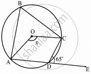 In the given diagram, O is the centre of the circle and ABCD is a cyclic quadrilateral. If ∠CDE = 65°, then the value of x is:
