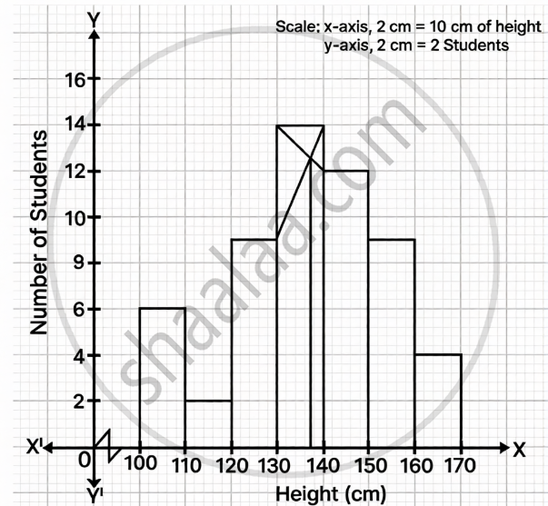 The histogram drawn on the graph represents the number of students of different heights (in cm).
