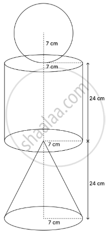 A solid wooden toy is prepared by joining a cone, a cylinder and a sphere, as shown in the given diagram. The radius of each of the three solids is 7 cm and heights of each of the cone and the cylinder is 24 cm. Find: