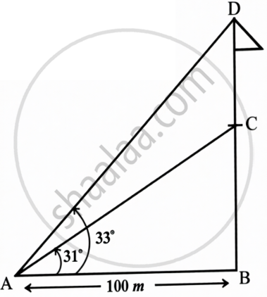 A flagpole is erected at the top of a building. The angle of elevation of the top and foot of the flagpole from a point 100 m away, on the same level as that of the foot of the building, are 33° and 31° respectively. Find the height of the flagpole. Give your answer correct to the nearest metre.