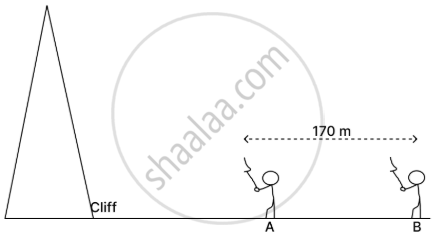 Two persons A and B are standing in front of a cliff in the same line 170 m apart as shown in the diagram. Person B fires the gun and hears the echo in 3 s. Then the person A standing in front of the person B fires the gun.