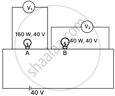 Bulb A rated 160 W, 40 V and Bulb B rated 40 W, 40 V are connected as shown in the diagram.