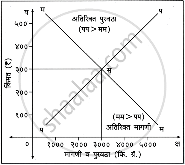 - वरील आकृतीत मागणी व पुरवठ्याचा समतोल कोणत्या बिंदूने दर्शवला आहे? (१)