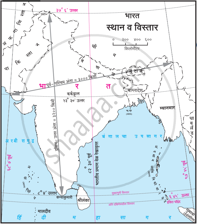 3. भारतातील पूर्व-पश्चिम अंतर किती आहे?