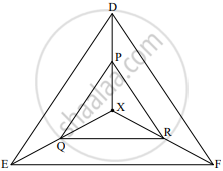 In the given figure, X is any point in the interior of the triangle. Point X is joined to the vertices of triangle. seg PQ || seg DE, seg QR || seg EF. Complete the activity and prove that seg PR || seg DF.