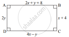 `square`ABCD आयत आहे. आकृतीत दिलेल्या माहितीचा उपयोग करून ax + by = c या स्वरूपात एकसामयिक समीकरणे तयार करा: