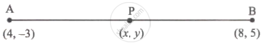 जर P हा बिंदू A(4, -3) आणि B(8, 5) यांना जोडणाऱ्या रेषाखंडाचे 3 : 1 या गुणोत्तरात विभाजन करत असेल, तर P बिंदूचे निर्देशक काढण्यासाठी खालील कृती पूर्ण करा.