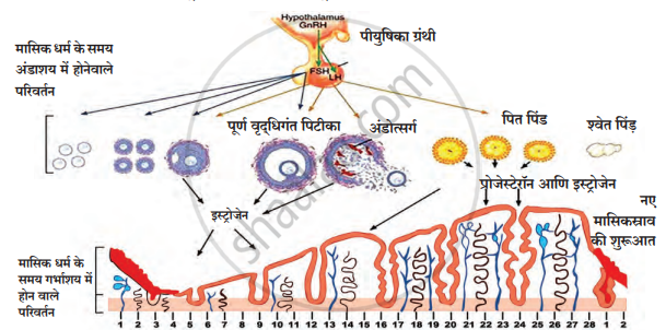 (मासिक चक्र/मासिक धर्म/ऋतुचक्र) दी गई आकृति के आधार पर प्रश्नों के उत्तर लिखिए: