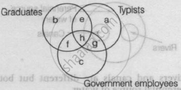 Below is given a figure made of three circles intersecting one another. These circles represent graduates, typists, and Government employees. The intersecting regions have been denoted by a, b, c, e, f, g, and h, respectively. Study the diagram carefully and answer the question
