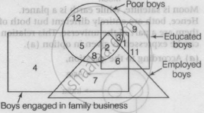 The circle represents poor boys, the square represents educated boys, the triangle represents the boys who are employed somewhere and the rectangle represents those who help in the family business. Each section of the diagram is numbered. Now, answer the questions given below on the basis of this diagram.