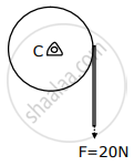 Consider a 20 kg uniform circular disk of radius 0.2 m. It is pin supported at its center and is at rest initially. The disk is acted upon by a constant force F = 20 N through a massless string wrapped around its periphery as shown in the figure.