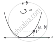 A bead of mass m stays at point P(a, b) on a wire bent in the shape of a parabola y = 4Cx2 and rotating with angular speed ω (see figure). The value of ω is ______. (neglect friction)