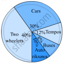 Observe the adjacent pie diagram. It shows the percentages of number of vehicles passing a signal in a town between 8 am and 10 am