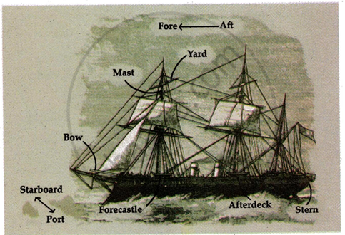 Certain special words are used to refer to the locations on a ship and to its parts. Read the meanings given below and find the word and the location/part in the picture given below.