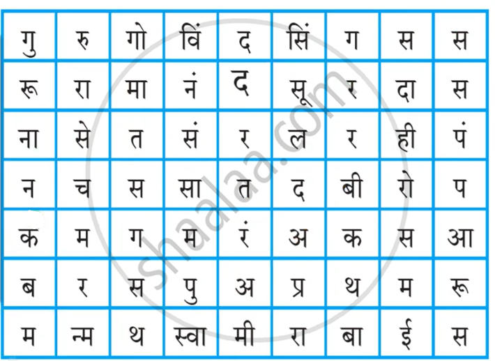 खालील चौकटीत लपलेली संतांची नावे लिहा.