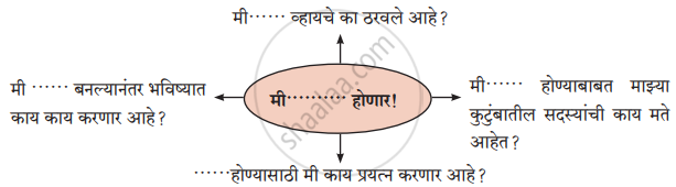 तुम्ही कोण होणार, ते ठरवा. त्यासंबंधित खाली काही प्रश्न दिले आहेत, त्यांवर विचार करा. त्या प्रश्नांची उत्तरे तयार करून त्यांचे सलग लेखन करा.