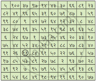 समीपे विद्यमाने चतुष्कोणे एकतः शतपर्यन्तं सङ्ख्याः लिखिताः सन्ति। एकः गणः सङ्ख्यां वदति। अपरः गणः चतुष्कोणे विद्यमानां सङ्ख्याम्‌ अन्विष्यति।