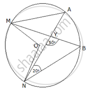 MABN are points on a drde having centre O. AN and MB cut at Y. If ∠ NYB = 50" and ∠ YNB = 200, find ∠ MAN and reflex angle MON.