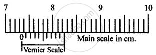 Figure shows the position of vernier scale while measuring the external length of a wooden cylinder.