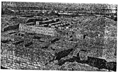 This picture on the right-hand side shows a well-planned ancient city located on the banks of a river.
