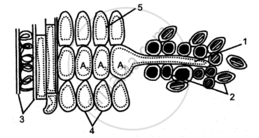 (i) Name the parts indicated by guidelines ‘1’ to ‘5’