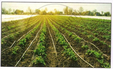 Sprinkler irrigation helps in conserving water.
