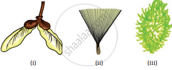 Group the seeds given in figure (i) to (iii) according to their means of dispersion.