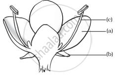In the diagram of a bisexual flower given in figure, draw the missing part and label the parts marked (a), (b) and (c). Also, label the missing part that you draw.