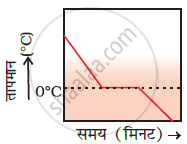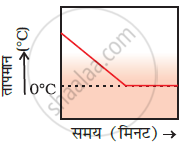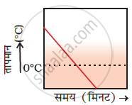 गरम जल युक्त एक काँच के पात्र को रेफ्रीजरेटर के फ्रीजर प्रभाग (ताप < 0°C) में रखा। यदि आप पात्र की अंतर्वस्तु के ताप का मापन कर सकें तो निम्नलिखित ग्राफ में से कौन-से समय के फलन के साथ ताप में परिवर्तन को सही निरूपित करता है?
