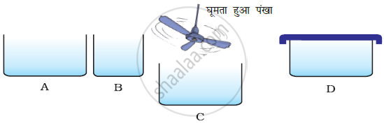 चित्र को देखिए तथा सुझाव दीजिए कि किस पात्र (a, b, c अथवा d) में वाष्पन की दर सर्वाधिक होगी? समझाइए।