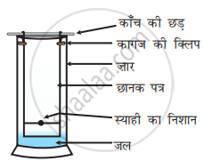 स्याही को निर्मित करने वाले रंजकों के एक मिश्रण को एक बालक पृथक करना चाहता है। उसने छन्ना पत्र पर स्याही से एक पंक्ति चिह्नित की तथा जल युक्त काँच के गिलास में छन्ना पत्र को चित्र में दर्शाए अनुसार रखा। छन्ना पत्र के शीर्ष के निकट जल पहुँचने पर छन्ना पत्र को बाहर निकाला।