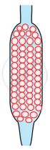 एक गिलास में रखे जल की सतह पर स्याही की एक बूँद डालने पर वह जल में चारों ओर फैल जाती है।