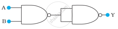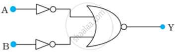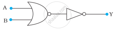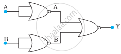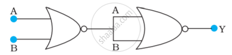 चित्र में दिए गए NOR गेट युक्त परिपथ की सत्यमान सारणी लिखिए और इस परिपथ द्वारा अनुपालित तर्क संक्रियाओं (OR, AND, NOT) को अभिनिर्धारित कीजिए। (संकेत : A = 0, B = 1 तब दूसरे NOR गेट के निवेश A और B, 0 होंगे और इस प्रकार Y = 1 होगा। इसी प्रकार A और B के दूसरे संयोजनों के लिएY के मान प्राप्त कीजिए। OR, AND, NOT द्वारों की सत्यमान सारणी से तुलना कीजिए और सही विकल्प प्राप्त कीजिए।)
