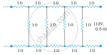 किसी 0.5 Ω आन्तरिक प्रतिरोध वाले 12 V के एक संभरण (Supply) से चित्र में दर्शाए गए अनन्त नेटवर्क द्वारा ली गई धारा का मान ज्ञात कीजिए। प्रत्येक प्रतिरोध का मान 1 Ω है।