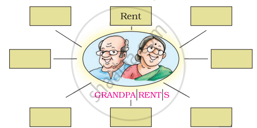 This is an outline of Meena’s grandfather. Add his hat, tie, mustache, glasses, stick, etc. Write each word in the given box. Color the picture and write his name.