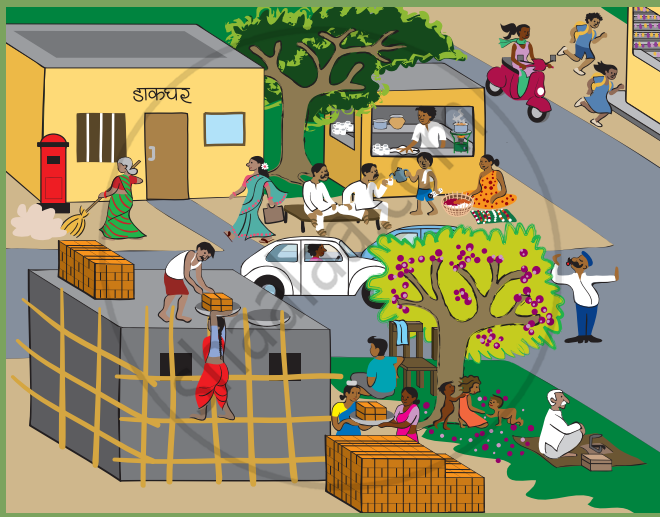 तुमने चित्र में देखा कि नई इमारत बनाने के लिए बहुत सारे लोग एक साथ काम करते हैं।