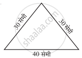 एक समद्विबाहु त्रिभुज जिसकी प्रत्येक समान भुजाएँ 8 सेमी की हो और तीसरी भुजा 6 सेमी हो।