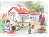 - श्यामपट पर घर लिखें और उसका चित्र दिखाते हुए विद्यार्थियों से बार-बार बुलवाएँ।