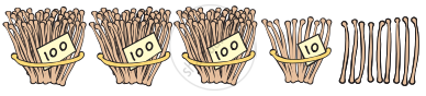 Find out how many packets of tens, hundreds and loose items each animal will take. Fill in the blanks.