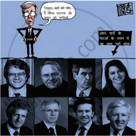 यह कार्टून लोकतंत्र के लिए एक चुनौती का प्रतिनिधित्व करता है। कृपया बताएं कि वह चुनौती क्या है। इसे भी नीचे दी गई तीन श्रेणियों में से एक में रखें।