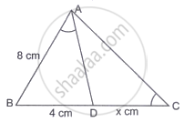 Given a triangle ABC and D is a point on BC such that BD = 4 cm and DC = x cm. If ∠BAD = ∠C and AB = 8 cm, then,
