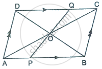 The diagonals AC and BD of a parallelogram ABCD intersect at ‘O’. A straight line through ‘O’ meets AB at P and DC at Q.