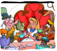 There is a table under a tree. A man with a big hat and a hare with long ears are sitting. A young girl is sitting between them. There are many cups on the table. The girl has a cup in her hand, and the man has a pot in his hand. It seems like they are having tea. Yes, they are having tea at the tea party in Wonderland. The girl is Alice, and she is in Wonderland.