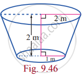 Find, by integration, the volume of the container which is in the shape of a right circular conical frustum as shown in the Fig 9.46